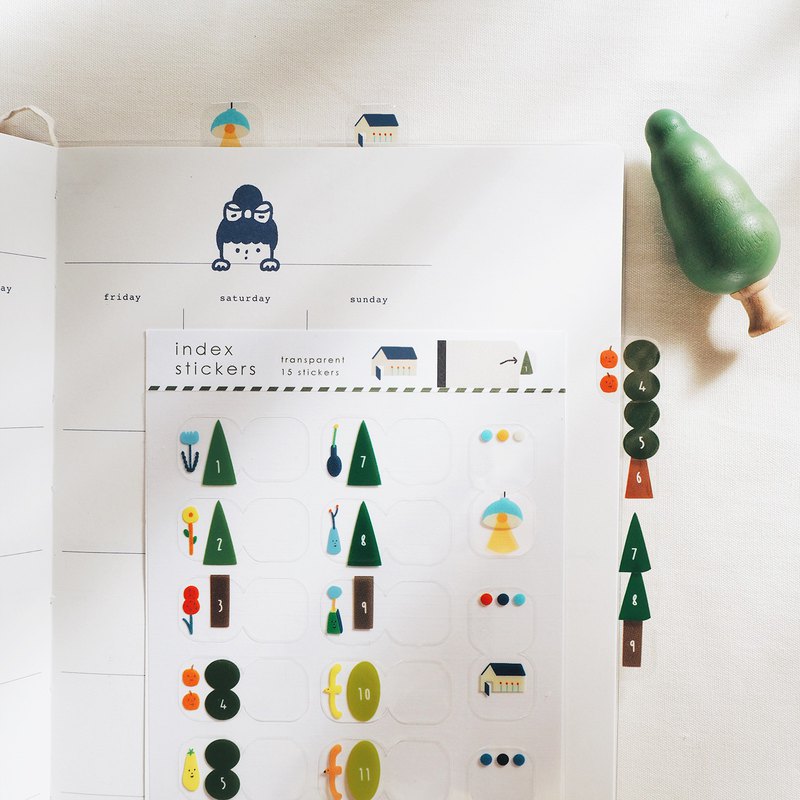 右手超人 樹/透明月份索引貼紙