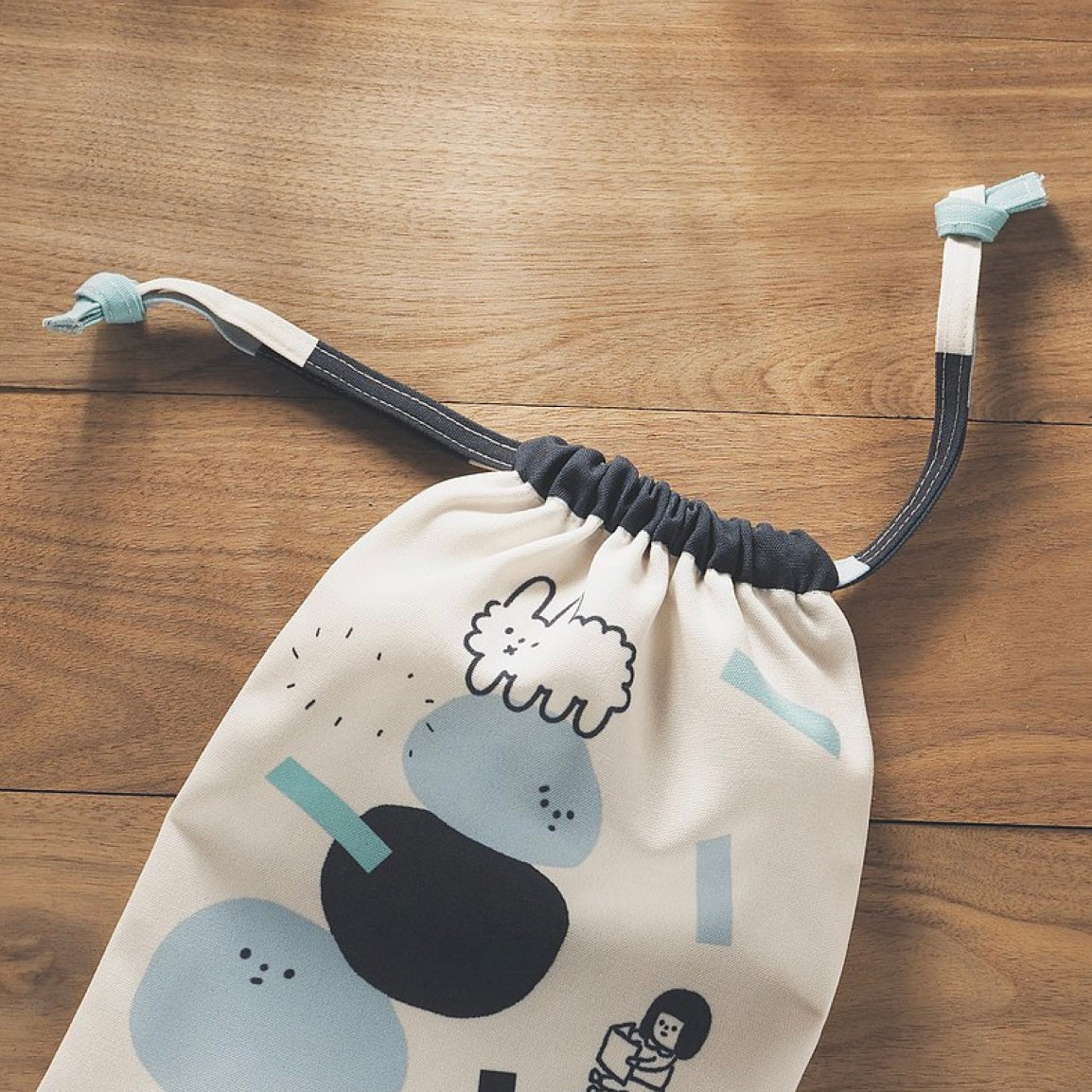 束口的繩子也是用印刷的,有搭配袋面的色塊顏色